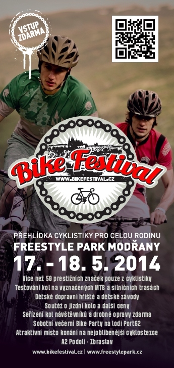 Na nejpopulárnější pražské cyklostezce, ve Freestyle Parku Modřany, vyroste uprostřed května, 17.–18. 5. 2014, festivalové cyklo městečko. Bike Festival je přehlídkou cyklistiky se zastoupením množství významných značek v prostředí, kam lze vyrazit s rodinou a přáteli, kde návštěvník příjemně stráví hodinu nebo celý den, získá přehled o novinkách a vychytávkách ze světa cyklistiky.