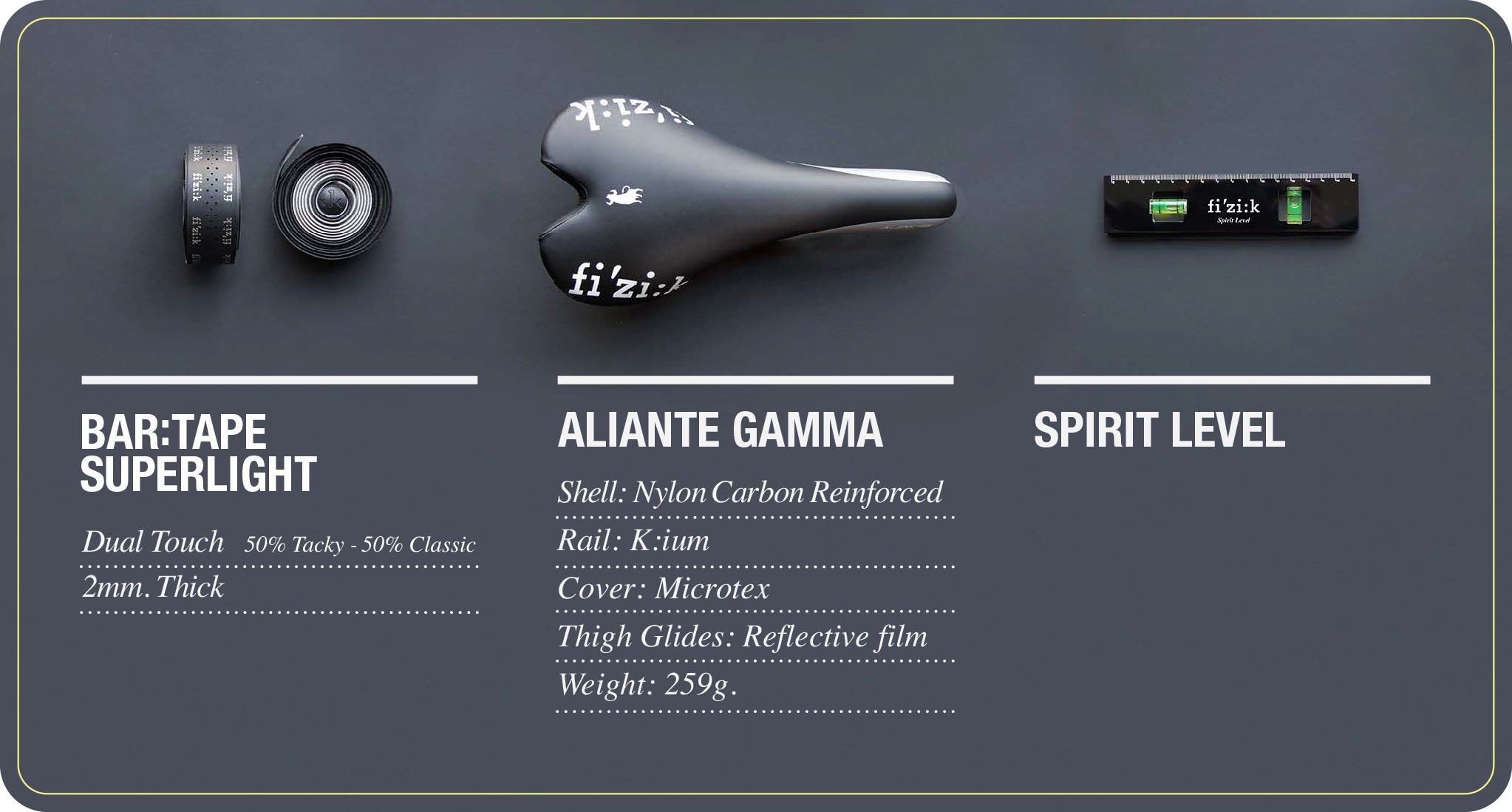 Nicolò Ildos, fi’zi:k Marketing a Racing Manager řekl: “Jsou to jedny z nejhezčích sedel, jaká jsme kdy vydesignovali a jsme rádi, že sedm z týmů pro Tour využívá kombinaci našeho Spine Conceptu sériových sedel s novým designem. Věříme, že jejich záblesky dobře uvidíme i na Champs Elyssée.“