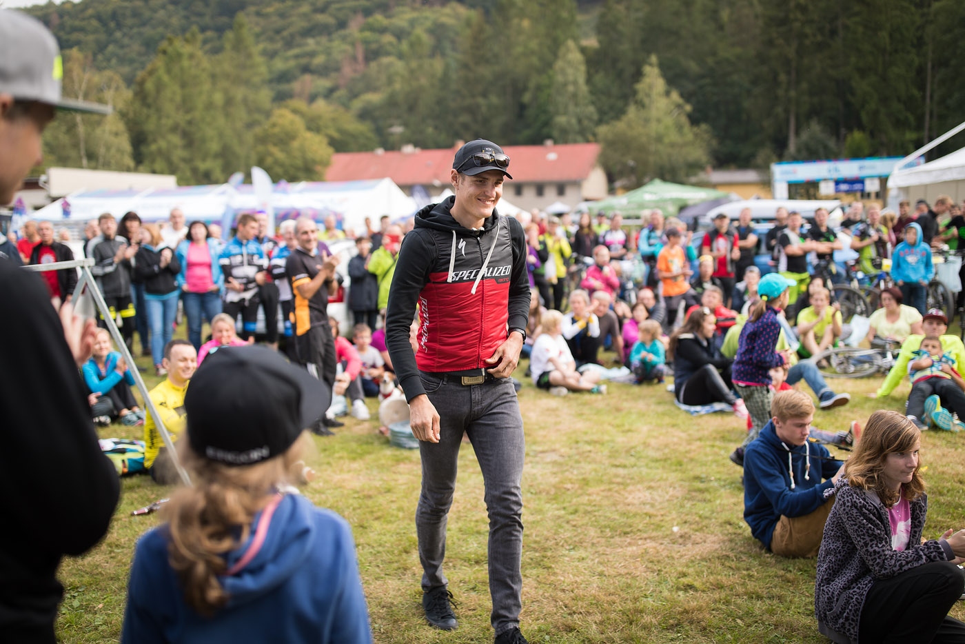 Ale co byly přírodní kulisy proti těm diváckým, kterými je Oderská Mlýnice pověstná! Kromě stovek závodníků se sem totiž z celého okolí sjíždí další stovky fanoušků, aby zde pro závodníky vytvořili doslova elektrizující atmosféru. Už startovní koridory přímo v táboře a úvodní část trasy kolem Spálovského mlýna obsypaly diváci, kteří svým hlukem rozháněli startovní nervozitu. Na startu se v čele s Jardou Kulhavým tísnila téměř tisícovka závodníků složená ze závodníků tras B i C, kteří zde startují netradičně společně. Startovní výstřel v 11:30 poslal dav vstříc rychlému úvodnímu, zhruba 20km dlouhému okruhu, který závodníky nadělil do mnoha výkonnostních skupin. Ty se pak vracely zpět do areálu závodu, aby projely prostorem cíle, jenž ovšem závod neukončoval, spíše naopak, na řadě byl zlatý hřeb celého závodu – Mlýnice.