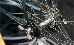 A přece se našli tací, kdož chtěli toto trápení alespoň trochu zmírnit a souboji cyklistů se zemskou gravitací nasadit pokud možno přívětivější tvář. Zadní náboj proto opatřili závity na obou stranách přírub, na ně našroubovali pastorky s rozdílnými počty zubů. V případě potřeby změny převodu tak cyklista musel zastavit, kolo demontovat, otočit ve vidlici, vystředit a po důkladném dotažení mohl zase pokračovat v jízdě. Napínákem řetězu mu byly patky v rámu, ve kterých kolo podle potřeby posouval a řetěz tak napínal či povoloval.
