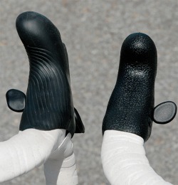 Srovnání tvaru mechanických a elektronických pák Shimano Dura-Ace 2009.
