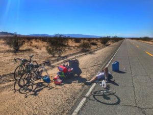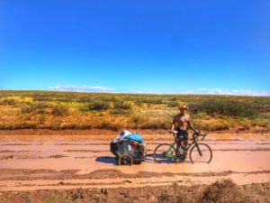 Silniční kola jsem zvolil proto, že jsem naplánoval trasu jen po silnicích, ale… u El Pasa je buď highway, po které jsme jet nemohli, nebo sice široká, ale rozbahněná a kamenitá cesta. Jak jsme se s ní vypořádali, je nejvíce zřejmé z našeho videa, které najdete na YouTube. Viz blok.