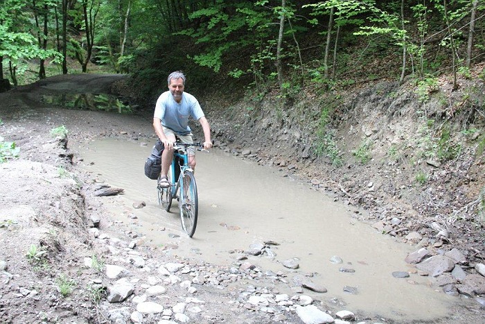 Cesty Zde Rumuni opravdu bodují na plné čáře. Netušil jsem, že asfalt je ředitelný vodou. Ten zdejší je. Místní cesty bych rozdělil na tři kategorie: komunikace s povrchem, bez povrchu a tušené. První mívají často šachovnicový design, kde se takřka pravidelně střídají zbytky živice s čímsi, co již není ani tímto. Kategorie číslo dvě se podobá našim polním cestám. Poslední skupina mnohdy existuje pouze díky domorodcům, kteří zde chodí pěšky nebo jezdí na koni, ale také zásluhou tvůrců map, které se tímto stávají nespolehlivými. Nutno však uznat, že jsme se programově a v zájmu sebezáchovy vyhýbali silnicím hlavním, kde se to auty, kamiony, ale i koňskými povozy jen hemží. Neradostný stav rumunských silnic přináší pro cyklisty jednu výhodu, auta po nich nemohou jezdit rychle, a rumunští řidiči jsou tudíž mnohem klidnější a kupodivu i ohleduplnější než ti naši.