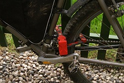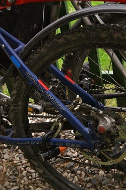 15. Pokud velikost vašeho zámku v konkrétní situaci neumožňuje k objektu zamknout najednou rám i zadní kolo, zvažte zamknutí zadního kola uvnitř trojúhelníku, který tvoří sedlová trubka a zadní vidlice. Přeříznutí ráfku a pláště zadního kola je sice možné, ale velmi pracné, a zloděj by si navíc lup výrazně znehodnotil.