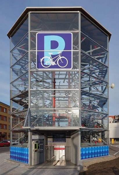 4. Velmi bezpečným místem pro uložení jízdního kola budou pravděpodobně automatické parkovací domy. Budoucí čas je zde na místě, neboť v Česku je zatím jediný, a to v Hradci Králové.