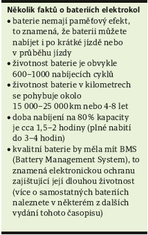 Elektrokola dnes už používají především moderní typy lithiových baterií. Jedná se o modifi kace – Li-Pol, LiFePO4 či Li-Ion, což jsou komerčně nejpoužívanější typy baterií. Vyznačují se dobrým poměrem mezi váhou, výdrží, životností a cenou. Běžné napětí těchto akumulátorů je 36 V (výjimečně i 48 V).