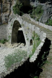 Slunečné ráno slibovalo další krásný den. Vyrazili jsme přímo z Asprangeli a zamířili směrem na Elati a Dikorfo. Osvěžující vzduch a krásné panoramatické výhledy na zasněžené hřebeny Pindosu nás doprovázely až do Dikorfa. Silnička vedla téměř po vrstevnici a byli jsme na ní úplně sami. Dikorfo stálo za podrobnější prohlídku. Kamenné domky různé velikosti a provedení, kamenné střechy a samozřejmě také kamenné komíny. Kámen zde dostává novou dimenzi. Stačilo se jen pomalu procházet a vnímat tu okolní „dobu kamennou“. Nutno podotknout, že když se porozhlédnete po bližším i vzdálenějším okolí, tak o stavební materiál tu opravdu není nouze. Vyrážíme směrem na Manasi a Kaloutu. Silnička začíná klesat a za chvilku jsme byli v údolí říčky Zagoritikos (v polovině května už je také kamenná). Vystoupali jsme ke kostelíku Aghios Christoforos. Mírné, asi 6km stoupání doprovázely opět skvělé výhledy. Slunce začalo docela nabírat na síle, a tak naše rychlost příliš nepřevyšovala rychlost želvy právě „přebíhající“ silnici. Stačil krátký odpočinek ve stínu u kostelíka. Následoval totiž mírný sjezd směrem na Kipi se sérií kamenných mostů. První menší se krčil vpravo od silnice po několika kilometrech u Meghali Sternitsy. Při rychlejší jízdě by byl snadno přehlédnutelný. Další o trošku větší s názvem Lakos Pavis se nalézá ještě před vesnicí Kipi. Za ní pak následoval asi po 500 m trojobloukový kamenný most Plakidas. Jedná se asi o nejznámější kamenný most v Zagori. Zelená tůň pod ním nás okamžitě lákala ke koupeli. V tomto horku průzračná voda příjemně osvěžila. Později v létě asi i tahle tůň vysychá. Pro občerstvení jsme si vystoupali do taverny (samozřejmě pod platanem) do nedaleké Koukoli. K nedalekému kamennému mostu Kokoros to bylo už jen z kopce. Slibovaná tůň pod ním byla ale zcela vyschlá. Bylo to dokonale stylové – kamenný most nad kamenným řečištěm a kolem vysoké kamenné stěny. Cestou zpět do Asprangeli jsme ještě odbočili do malebné vesničky Dilofo. Po prohlídce jsme se nevraceli zpět na hlavní silnici, ale příjemnou úzkou šotolinovou cestou jsme pokračovali až na silnici Asprangeli–Monodendri. Odtud už to byl do naší základny jen skok.