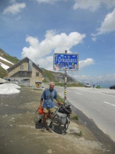 Ávila s nádhernými středověkými hradbami, Toledo proslulé výrobou vynikajících mečů, Albacote, Planes, vesnička v kopcích, kde poskytují úrodu olivové háje na terasách. A v těchto místech, snad už jen 60 km od moře, jsem sjížděl z kopce zhruba 20 km asi tři hodiny. Každou chvíli jsem zastavoval, kochal se přírodou a kamennými vesnicemi. Rostly tu olivy, třešně, fíky, pomeranče, náramně pestrý kraj. Dojel jsem do města Javea, letoviska na břehu Středozemního moře. Tady jsem strávil čtyři dny odpočinku u své exotické praneteře Nikoly, pracující v jednom z četných barů u dlouhé pláže. Nikča velmi dobře vaří, měl jsem se u ní dobře. Mezitím jsem absolvoval návštěvu zdravotní pohotovosti, potřeboval jsem antibiotika na své bércové vředy. Pak jsem víceméně kopíroval pobřeží. Valencia, Castellón, Tarragona, Barcelona, do které jsem se odvážil jedině kvůli věhlasné katedrále Sagrada Família proslulého mistra Antonia Gaudího. Nádhera! Staví se již 145 let a ještě není úplně hotová. Musel jsem hodně odstoupit od 180 metrů vysokých věží, abych je dostal do foťáku celé. Výjezd ze třímilionové aglomerace byl pro mě děs a hrůza. Naštěstí už druhý den jsem byl v pohodě, když jsem dlouho míjel zubaté pohoří Montserrat s klášterem. Dále projíždím prťavým státečkem Andorra. Moc hezké, jen se člověk dost zadýchá přes průsmyk Port d’ Envalira, 2408 metrů, a to jsem šel většinou pěšky. Holt už na to nemám. Odměnou mi bylo snad 40 kiláků stále dolů. Hned jsem byl opět ve Francii. Beziers, Voirón, Annecy s jezerem, taky paráda. To už byly kolem slušné kopce, v jednom místě se snášela k zemi snad stovka barevných paraglajdistů. A šup – a už jsem byl ve Švýcarsku a koupal se v Ženevském jezeře. Nádherné hory kolem a až do města Brig celkem po rovině. Sady jabloní, hrušní, broskvoní, vinohrady i vysoko ve svazích. Na vršcích Alp se bělal sníh, hlavu jsem si mohl ukroutit. Za Brigem se silnice zvedla, na Furkapass, 2436 metrů, nejvyšší bod na mé trase, jsem více šel, než jel. Vlasové serpentiny dolů, měl jsem co dělat, abych to ubrzdil. Následoval Oberalppass, 2048 metrů. Ten byl mírnější a z větší části se dal šlapat. Posledním velkým průsmykem byl pro mě Albulapass, 2315 metrů. Tady jsem zas již víceméně cupital. Typicky červený švýcarský vláček si cestu usnadňoval tunely, které jsou ve skále vedeny po spirále. Takže chvíli jsem měl vláček pod sebou, ale za chvilku mi už duněl nad hlavou. Po rychlém sjezdu do Rakous jsem si to šinul podle řeky Inn a již to nebylo na sílu tak náročné. Jen trochu pršelo. Projížděl jsem Innsbruckem, střediskem zimních sportů, Kufsteinem s hradem, Salcburk rovnal se pro mě Mozart, Linec na Dunaji – a to už jsem byl skoro doma. Ale ještě mě čekalo pár slušných kopečků a konečně to bylo mírně dolů do Hevlína, pak Brno, Blansko a byl jsem zase u své chajdy.