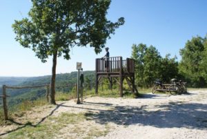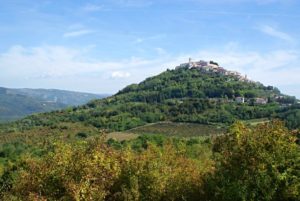 Po projetí tunelu Kalcini se dostanete do nejvyššího místa na Parenzaně, do tři sta metrů nad mořem. Odsud je pár nádherných výhledů na údolí řeky Mirny a už i na motovunský hrad.