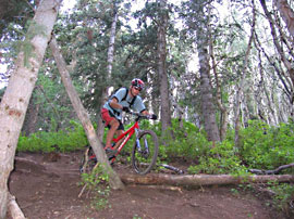 Je čtvrtek, 18:00 hodin – čas pravidelné vyjížďky s lidmi kolem White Pine Touring, jednoho ze tří hlavních cyklistických obchodů ve městě (Cole Sport jezdí v pondělí, Jans v úterý). Jednou týdně se dokonce koná speciální jízda výhradně pro dámy. Tyto akce jsou pro veřejnost zdarma (obchodníci se tak snaží přilákat nové duše a, pochopitelně, profitovat). Jediné, co musíte, je podepsat prohlášení, že jedete na vlastní nebezpečí a nebudete obchod soudit v případě, že překročíte hranice svých technických schopností… Typická Amerika. Po parkovišti, které přes den slouží jako zkušební dráha pro nakupující, už krouží několik borců na fullech. „How is it going, guys?” „Pretty good!” Dnešními vůdci jsou Reed a Jessee. Lehce nastiňují trasu, seznamují se s novými tvářemi a vyrážíme. V Park City pravděpodobně není místo, ze kterého byste se na single track nedostali během pěti minut – z mého bydliště je to přesně 10 sekund. Napojujeme se na Rail Trail, nejlehčí z nich, asfaltovou trasu začínající hned za obchodem, a po chvíli odbočujeme doprava na single (Skid Row). Ostré serpentiny ukončují hovor, nastává hromadné řazení na „granny”, hodně lehký převod, a už je slyšet jenom zvuk přehazování a občasné kletby. Ostré obrátky o 180° okořeněné uvolněnými kameny a štěrkem prověří manévrovací schopnosti a rovnováhu. Během 20 minut překonáváme 150 výškových metrů. Na vrcholu se peloton rozděluje na „chrty” a „turisty” a pak už se jenom šlape a kochá výhledy na zapadající slunce a hory okolo. Po náročných stoupáních se čeká na slabší kusy – každému je dána šance, i úplným začátečníkům a starším, nikdo není poslán domů s tím, že na to nemá. To ale neznamená, že by se jezdilo jako s mlékem. Jízda končí zhruba po dvou a půl hodině, computer ukazuje 30 km. Dnešní bilance? Jedna utržená klika, jeden pád přes hranu trailu do křoví a jeden náraz do stromu. Všichni zdrávi a spokojeni. Nutno dodat, že jsme se za celou dobu nevzdálili z Park City a pouze obkroužili několik kopců zvedajících se přímo z Main Street.