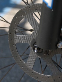 Tak že by snad opravdu ano? Třmen Formula byl na jednom ze stánků doplněn o kompletně karbonový kotouč. Podle slov technika se však o tuto značku nejedná. I přes výmluvná gesta a slova „top secret“ s lišáckým úsměvem se nám podařilo zjistit, že se jedná o speciální vlákno s přídavkem keramiky, které je identické s brzdovými kotouči, jaké jsou používány v F1 a u většiny supersportů jako Ferrari, Masseratti či Bentley. Je proto pádný důvod domnívat se, že výrobcem je značka Brembo. K těmto kotoučům je zapotřebí používat také speciální brzdové destičky. Podle technika je testování s úspěšnými výsledky ukončeno a vše je připraveno pro sériovou výrobu.