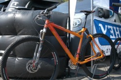 Skutečnou perličkou mezi několika málo 29“ koly vystavenými na festivalu byl model Dos Niner značky Salsa. U něj nás kromě velkých kol zapletených do vlastních ráfků zaujala hlavně konstrukce typu softail, na jejíž stavbu se v minulosti většinou využívala ocel. Zde ale padla volba na hliníkovou slitinu s příměsí scandia, přičemž pohyb zadní stavby umožnilo výrazné zploštění zadní vidlice v její střední části.