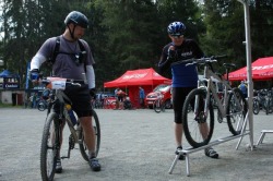 Počasí vyšlo, trasy byly skvělé, na sto kol osmi značek, která bylo možné si na místě na celý den vypůjčit a vyzkoušet v terénu, se nezastavilo (více o této možnosti se dočtete na dalších stránkách), vše tedy klapalo jako po drátkách? Vše důležité ano. Mistrovství světa v hokeji, při kterém jsme mohli sledovat marný výkon našich borců na dvou velkoplošných obrazovkách, posunulo začátky besed o hodinu oproti programu. Teplá voda pak docházela poměrně brzy a nemálo cyklistů si po desítkách kilometrů v nohách dalo další etapu v podobě bobříka otužilosti. Kupodivu to však většina z nich brala jako další výzvu, jako pořadatelé jsme se nestali terčem všeobecného kamenování.