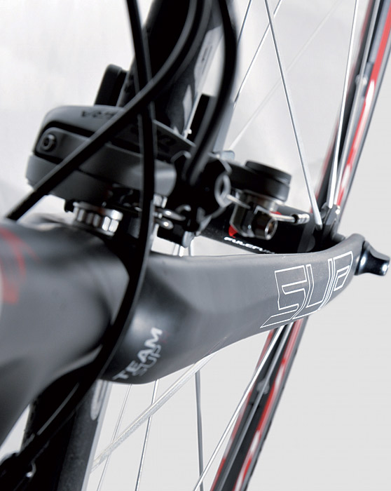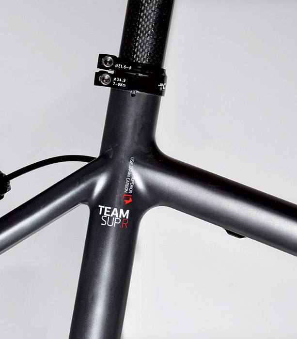 Ačkoli je v rodném listu modelu Team Racing s velikým nápisem Sup na trubce deklarovaná česká národnost, nelze opominout jeho silné zahraniční geny. Pro stavbu rámu byla použita karbonová vlákna z produkce japonské firmy Toshiba. Celkem strohé informace o použitých technologiích hovoří o obvyklém: jednotlivé vrstvy jsou skládány pod různými úhly, celek je zhotoven technologií monocoque, jeho funkci podporuje tvarování trubek. Každá z nich na své cestě ke spojení s další několikráte mění sílu průřezu a tvar. Zcela nenuceně se pak propojují, žádné monstrózní efekty. Nenápadný šarm podtrhuje i design, vlastně pouhý nápis Sup na spodní rámové trubce a krátké bílé partie na horní. Za pozornost stojí zpracování zadní stavby. Vidlice v ostrém oblouku přechází ve vzpěry, přičemž patky jsou vysazeny vně.
