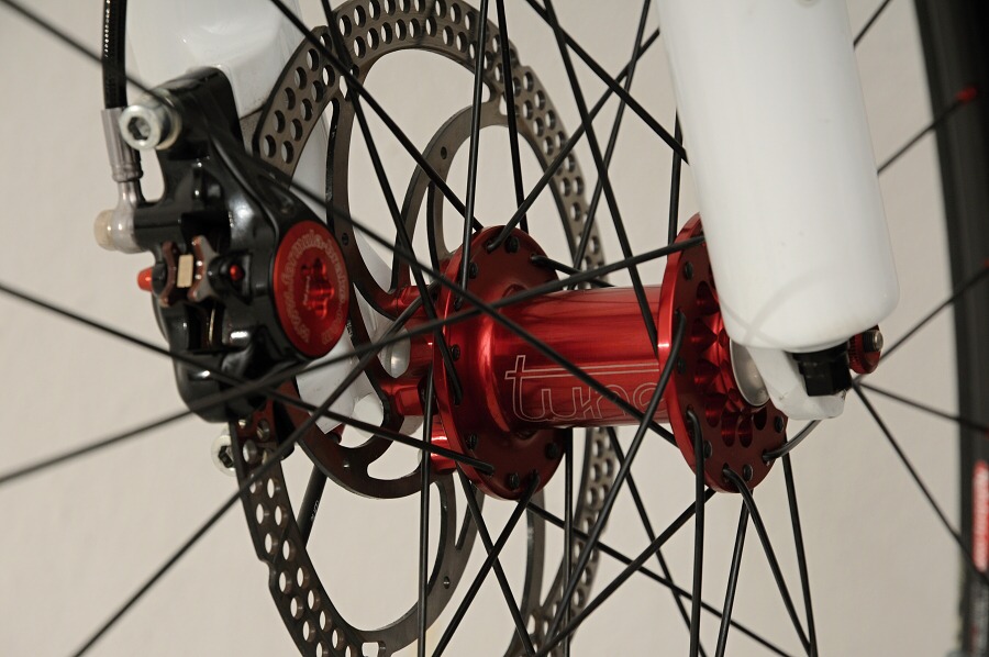 * výbava sériové verze, testované kolo se od tohoto provedení lišilo (z nejdůležitějších komponentů zmiňme komponenty Shimano XT, zapletená kola Spinergy Xyclone Disc, kliky RaceFace SIXC, komponenty Thomson)