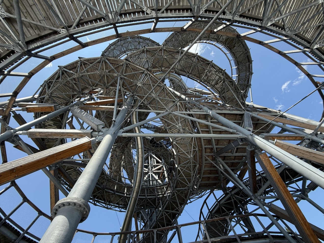 Na polské straně bylo vše dobře označeno, a pokud jsme se dokázali více opřít do pedálů či tu a tam jemně překonat již ostře trčící kameny uprostřed trailu, taky jsme si přišli na své. Ale to nejlepší na nás čekalo cestou zpět do města Świeradów Zdroj, kde se z hladkého a málo ježděného singletracku vyklubalo parádní rodeo. Ne moc dlouhé, ale celá cesta až do města byla poskakováním přes boule, kořeny a jiné lesní nástrahy. Tohle nás pořádně bavilo. Večer jsme přidali i jinou zábavu. Vyrazili jsme se ještě mrknout na Sky Walk, který nás vzal po 850 metrů dlouhé lávce do výšky 62 metrů nad zemí. Děcka tu řádí v tobogánu či na prolejzačkách vysoko nad zemí, výhled do okolí bere dech. Naše show se blíží ke konci. Tak ještě rychle na lázeňskou dřevěnou kolonádu. Krásná stavba v původním duchu, kde si dáváme místní minerální vodu z vřídla a po doplnění minerálů a v kavárně i sacharidů se již vydáváme směr domov.