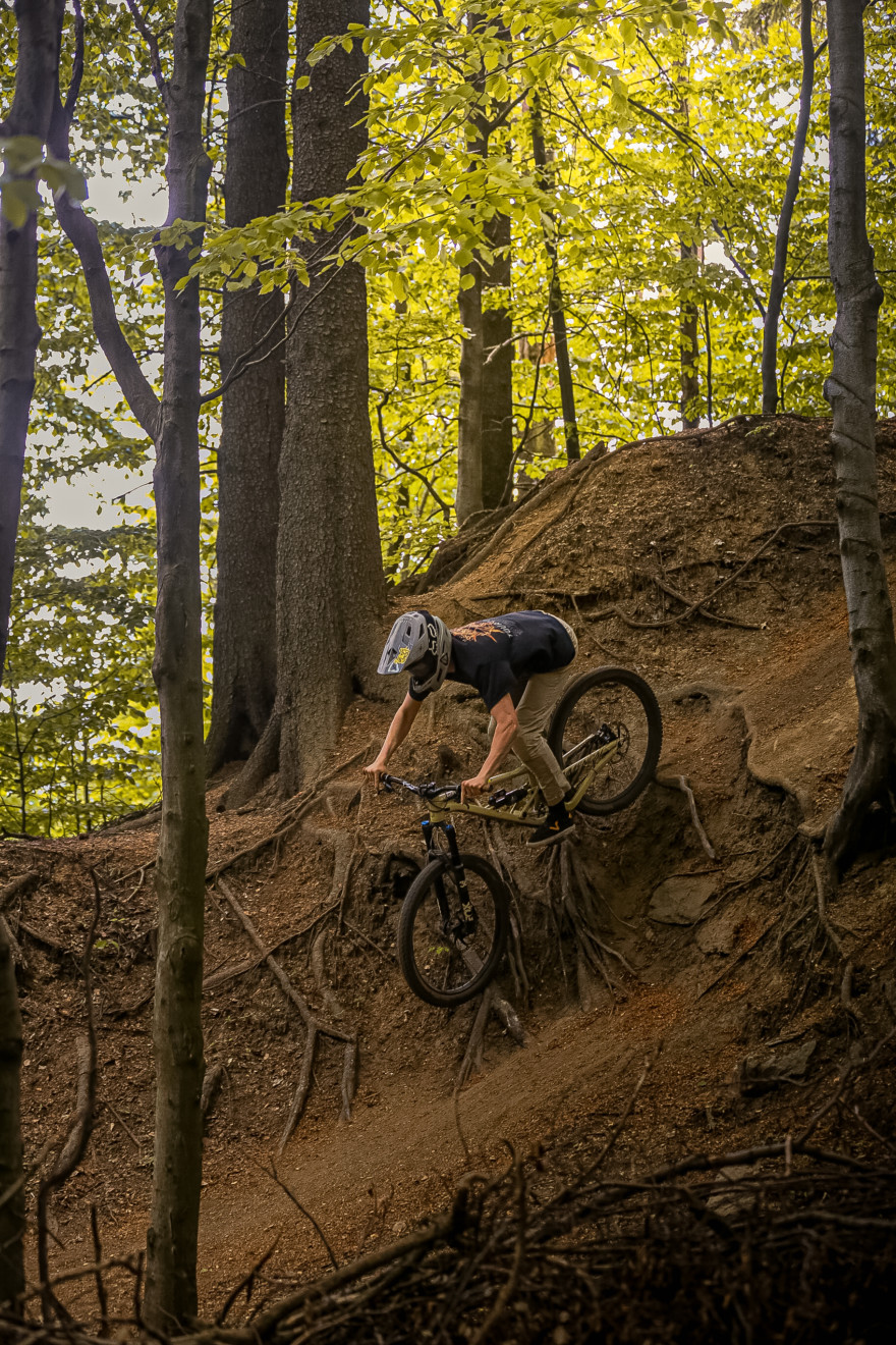 Další den ráno, už lehce zbití, jedeme ještě omrknout přilehlé singletracky. Zhmotněná úžasná myšlenka. Dejme lidem oficiální trasy, které budou protkávat celé Dolní Slezsko. Je to přes 2900 kilometrů! Z toho 400 km patří singletrackům, dalších 100 km je již v projektu a zbytek jsou značené cesty ideálně mimo dopravní tahy. Neskutečné! Trasy jsou velmi dobře značené pomocí průjezdových bran a dřevěných sloupků, které nesou logo a barvu daného trailu. Nejedná se o stezky, na nichž by čekalo na jezdce nějaké nebezpečí v podobě skal a vysokých skoků. Jsou to klasické klikatící se traily v lese, které jsou zpestřeny nejednou boulí, kterou začátečník snadno přejede, ale zkušený jezdec se z jedné odpálí na druhou – jen rychlost a umění ovládat bike posouvá obtížnost trailu. Tady si užijí všichni. Ať jsi malý nebo velký, zkušený pilot či začínající nadšenec. Ať chceš projet okruh a vyzkoušet si své dovednosti ovládat bike, než vyrazíš do bikeparku, anebo chceš jet dlouhý XC výlet s kamarády, rodinou, přítelkyní či babičkou. Tohle je přesně takové, pro nás všechny, co máme rádi bike, bez ohledu na to, jak nám nejvíc chutná.