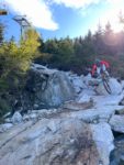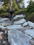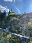 Po rozhýbání ve skill zóně jedeme na první traily. Lanovka je příjemná, rychlá a nakládání kola zcela bezpečné. Bike pověsíme za přední kolo na hák, všechna kontaktní místa jsou kryta pěnovým polstrem. Netrvá dlouho a stojíme na vrcholu kopce. Úžasný výhled do krajiny před námi a ať koukáme, kam koukáme, stále vidíme kameny a ostřejší způsob pojetí té naší cyklistiky. Je to tak! Tady se již odděluje zrno od plev.