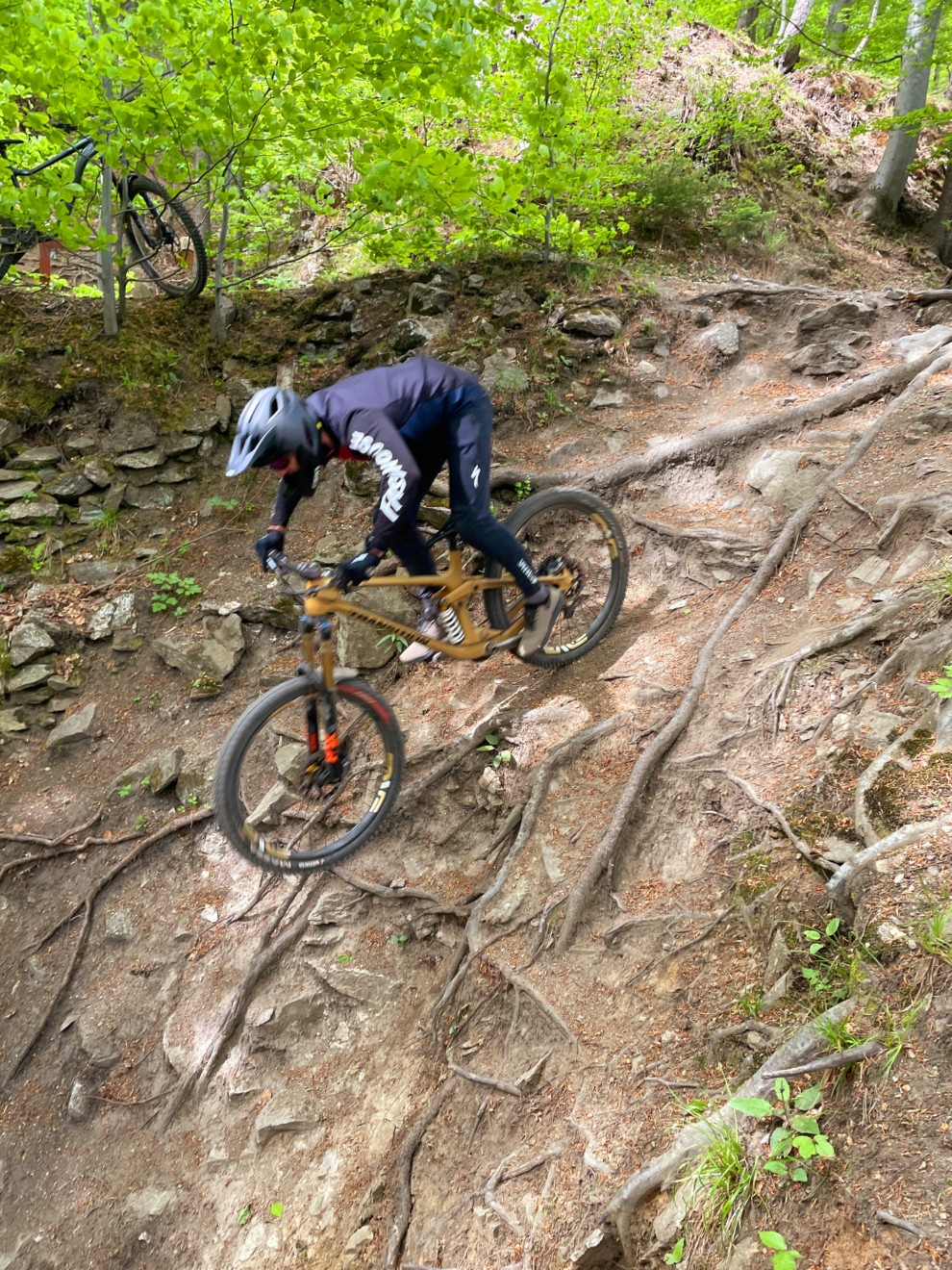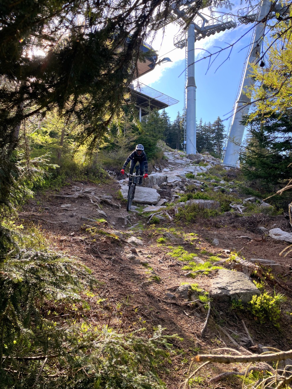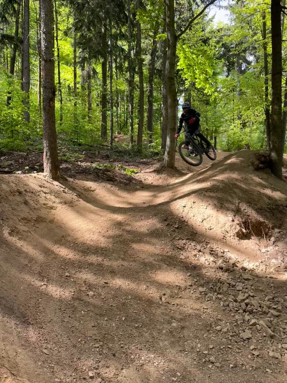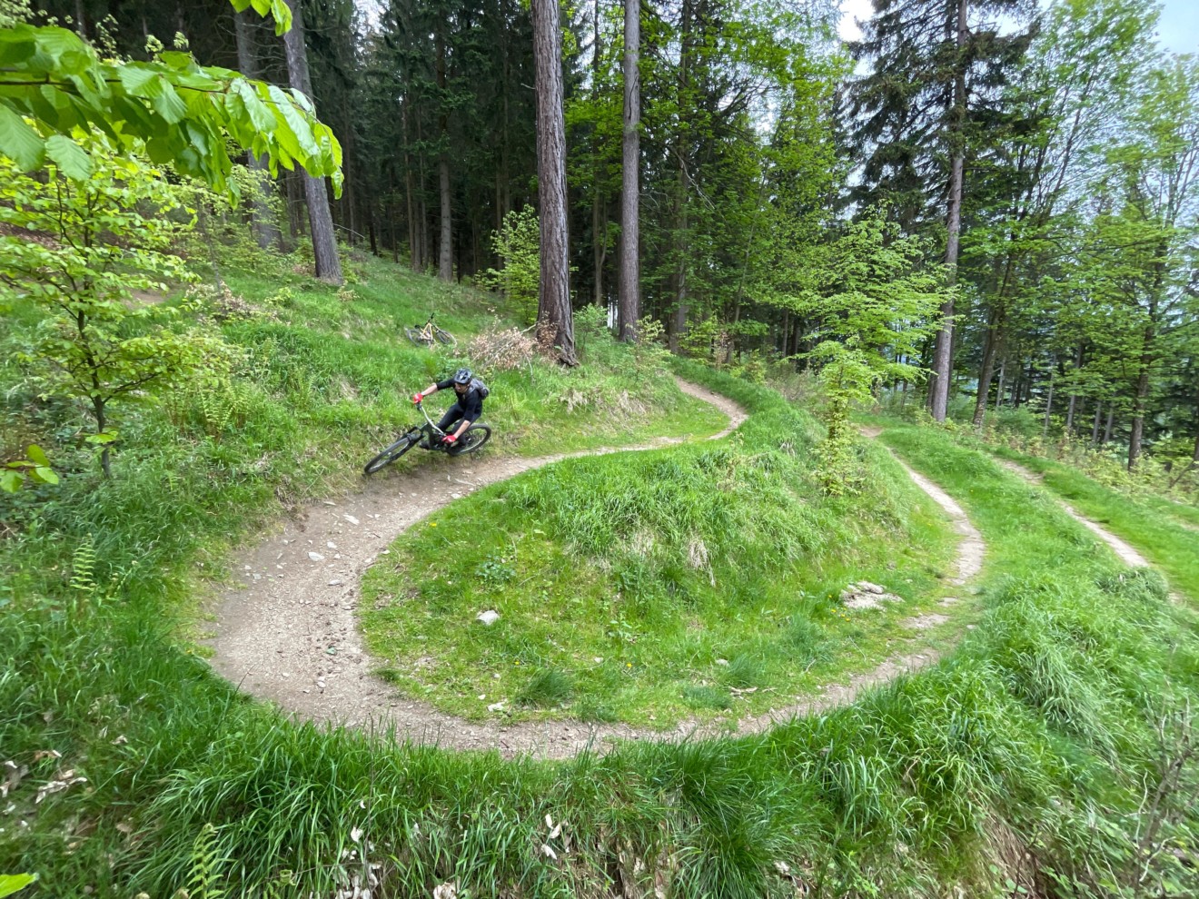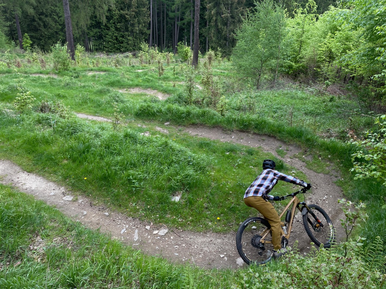 Nechceme ale vytvářet dojem, že je tu jen flow trail a pak zase jen těžké enduro. Kdepak. Jsou tu lajny vše druhu. Pěkně odstupňované a v mapce přehledně vyznačené. Každý si tu přijde na své. A když už jsme nevěděli coby, sáhli jsme na trasy, kde jsme mohli zdolat několik velmi strmých a technických pasáží a na konci se parádně proletět s hlavou v oblacích. Tahle rozmanitost nás opravdu bavila.
