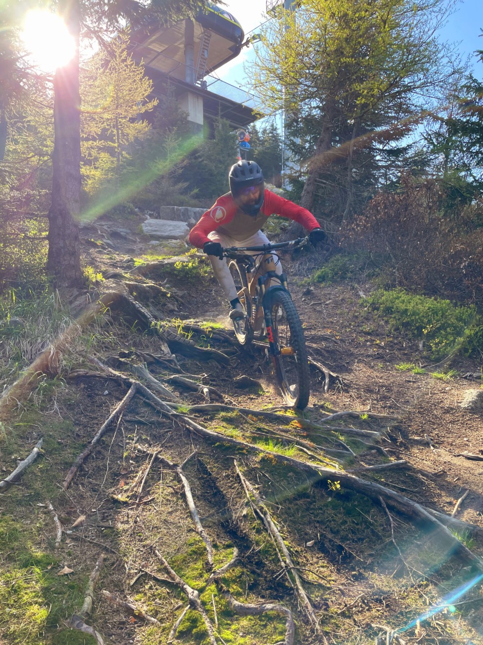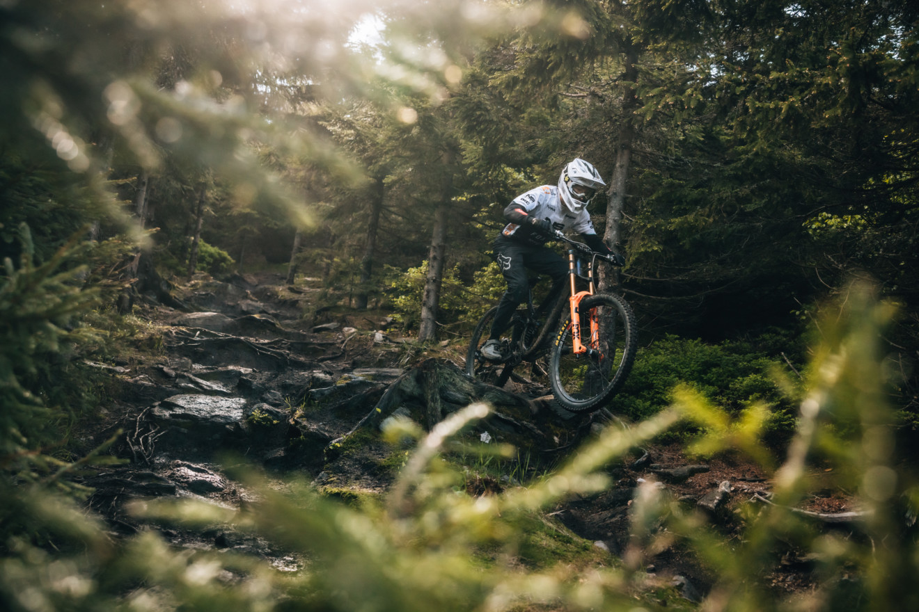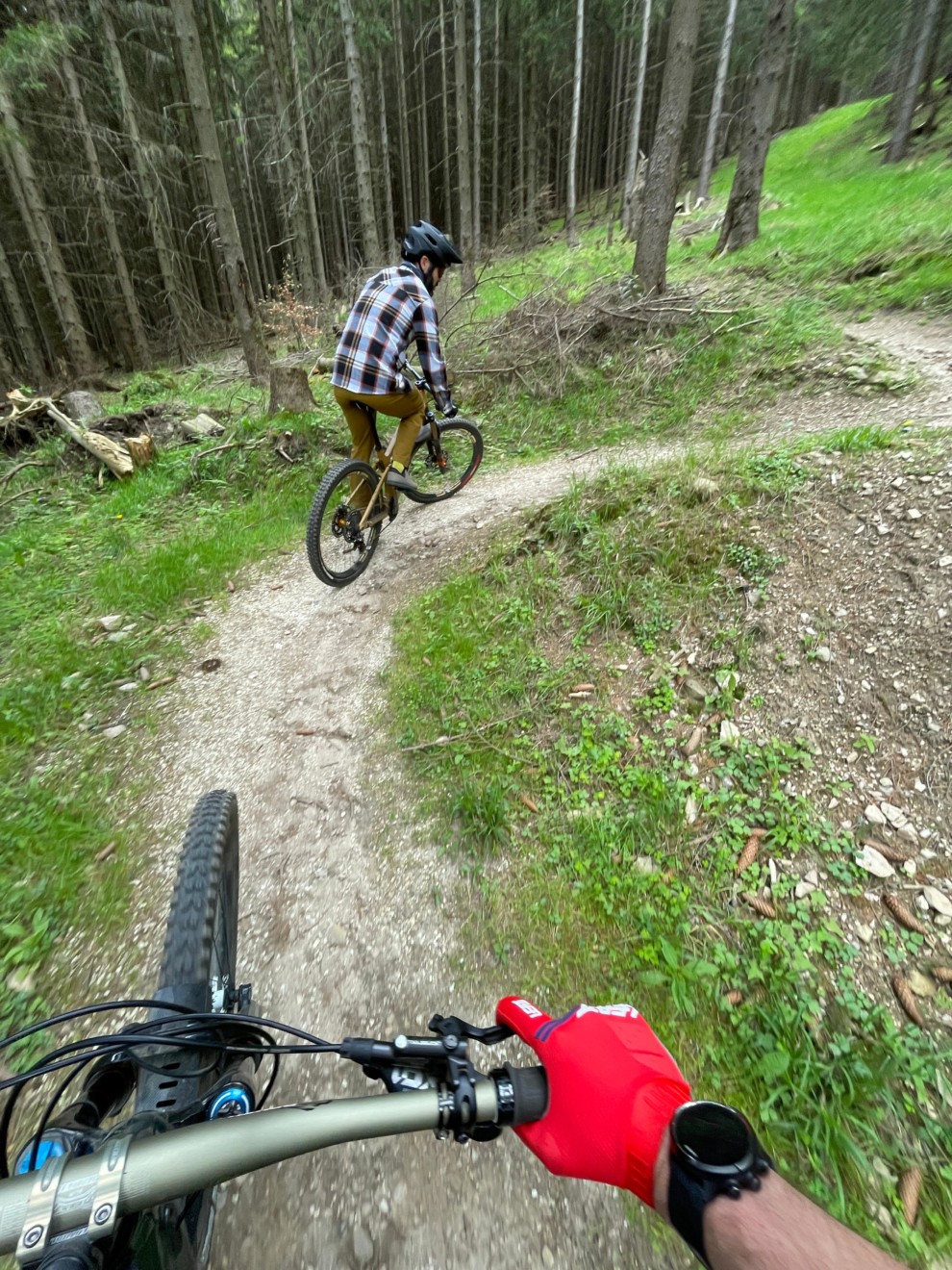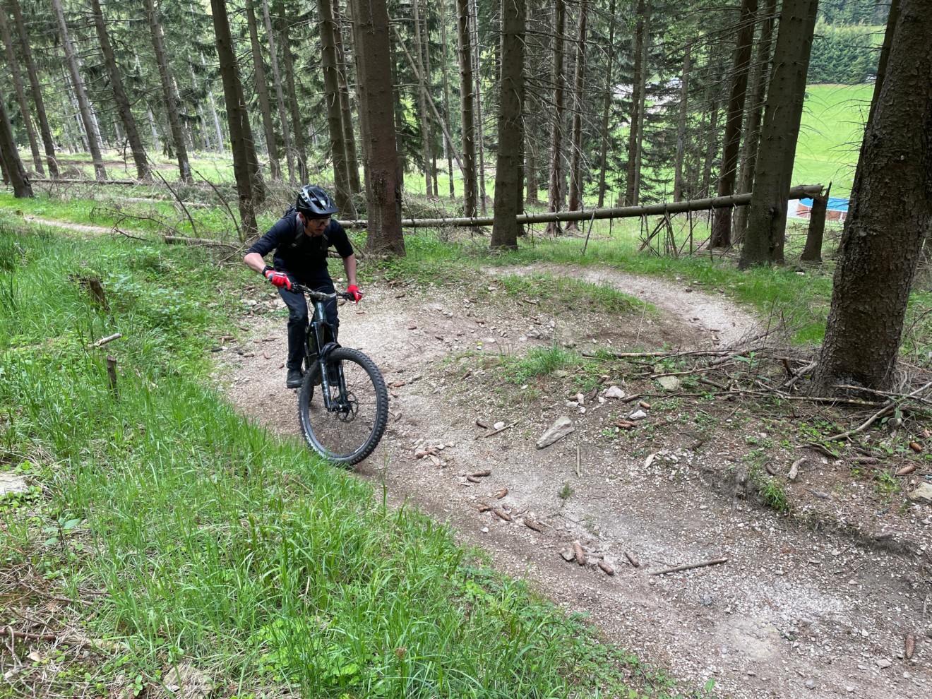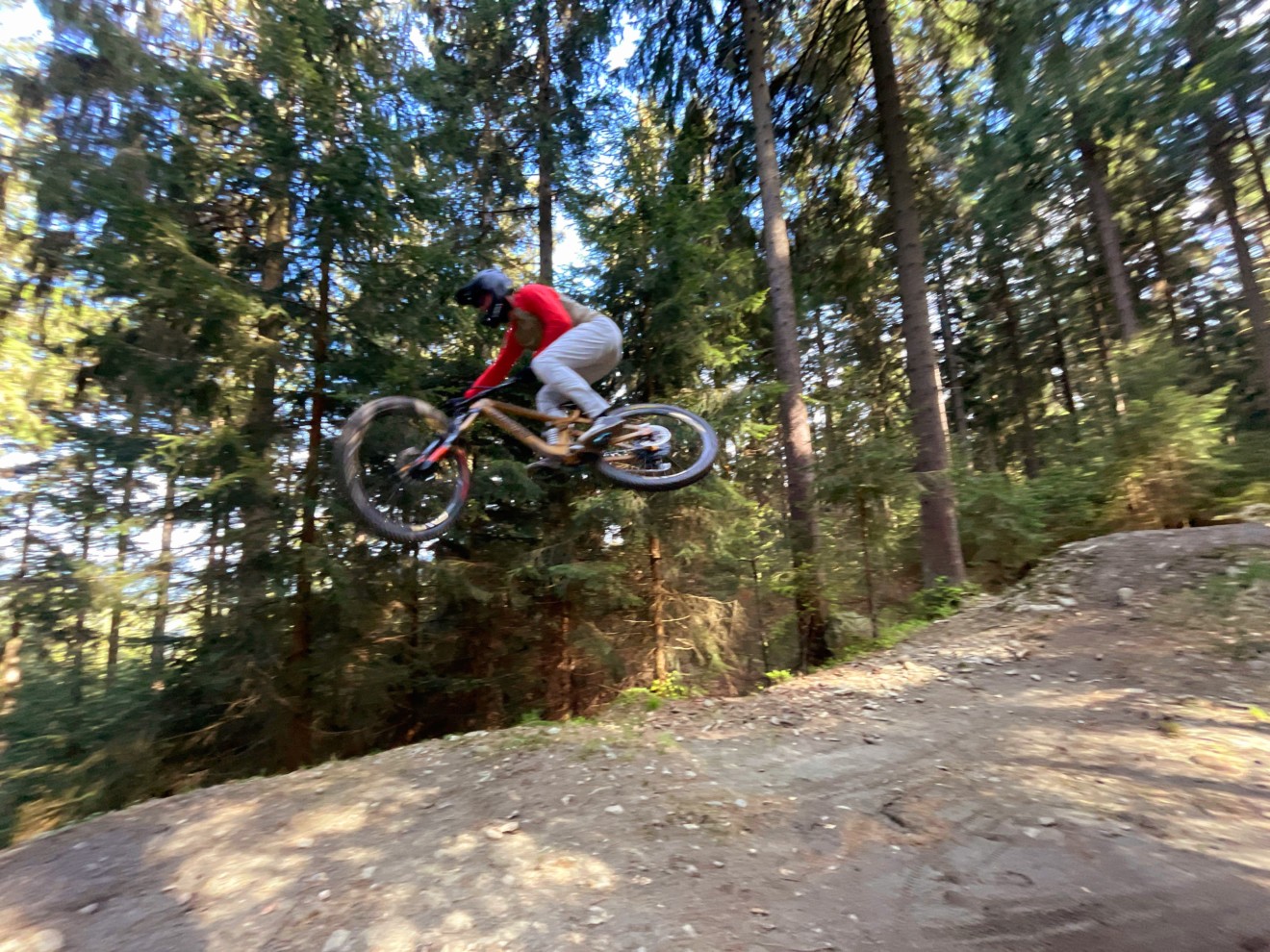 Nechceme ale vytvářet dojem, že je tu jen flow trail a pak zase jen těžké enduro. Kdepak. Jsou tu lajny vše druhu. Pěkně odstupňované a v mapce přehledně vyznačené. Každý si tu přijde na své. A když už jsme nevěděli coby, sáhli jsme na trasy, kde jsme mohli zdolat několik velmi strmých a technických pasáží a na konci se parádně proletět s hlavou v oblacích. Tahle rozmanitost nás opravdu bavila.