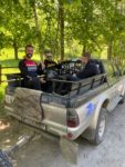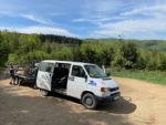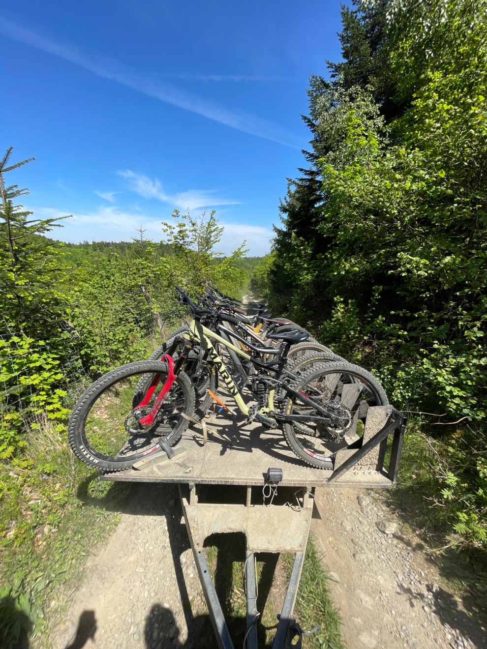 Kdo by chtěl, může za nimi pěkně po svých. Můžete i na elektrokole, ta vám nahoru beztak nikdo vozit nebude. Ať tak nebo tak, nezapomeňte si koupit vstup. Ano, nikdo vás tu nebude honit s vidlemi v ruce, ale je to podpora místních stavitelů, je to fér. Nás na kopec vyváží busík Volkswagen T4 s vozíkem na kola, ostřejším výtahem je pickup s vozíkem a terénem pěkně přímo až na vrchol. Obojí samozřejmě za úplatu. Zkusili jsme obě varianty, ale pak jsme zůstali u pohodlného gauče T4. Kola nám na vlek nakládá vždy řidič auta. A nebojte, mají to v paži. My jsme na kola dost opatrní, ale tady je vše úplně v pořádku. Kola jsou zafixovaná, nehnou se ani po průletu kamenité cesty. Nedřou o sebe a mají mezi sebou dostatek prostoru. Takže žádný strach a jedeme.