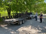 Celý den za řídítky nás vyčerpal, a tak jsme v šest hodin rádi naložili své stroje do auta. Pod parkovací plochou vidíme louku, která je posekaná, a na ní jsou vyhrazena místa pro campery a možnost přespání pod zelenými korunami listnatých stromů, které se svou majestátností vytvářejí poslední dotek lesa. A tak část obyvatel camperů může koukat na hvězdy pod širým nebem. Jo, tohle by se nám líbilo.