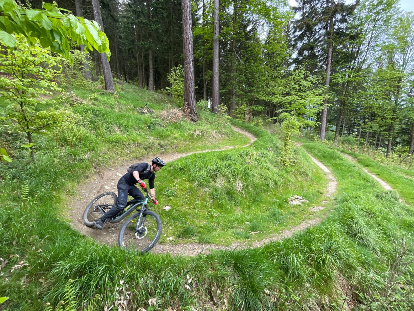 Hodně nás bavilo hltání kilometrů na těchhle zábavných stezkách, jen bychom zde více užili klasické XC kolo. Enduro už je tady spíše těžítkem a koulí na noze. Ale kdo chce, tak i na něm může. Tady se meze nekladou. Nejvíc nejlepší na tom celém je, že nepotkáte jediné auto. Takže jsou všichni happy jako dva grepy. Řidiči, že je nebrzdíme. My, že se můžeme soustředit a užívat si jízdu naplno a bezpečně. A dokonce i páni lesa jsou rádi, že jim cyklisté nejezdí tam, kam nemají. Inspirativní záležitost!
