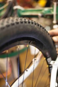 Kolo vytáhneme z patek (rámu či vidlice), vypustíme vzduch z duší či bezdušového systému, sundáme pásku z ráfku nebo jeho části a demontujeme kotouč. V případě zadního kola sundáme i kazetu. To vše překáží při odstranění zbytku drátu a instalaci nového.