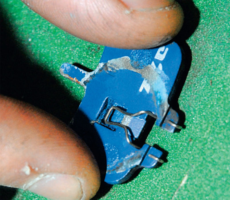 Destičky jemně obrousíme smirkovým papírem (nebo zaměníme za nové), pozor však na jejich potřísnění mastnotou (aby se objevil problém, stačí i jen mastné ruce) nebo brzdovou kapalinou.