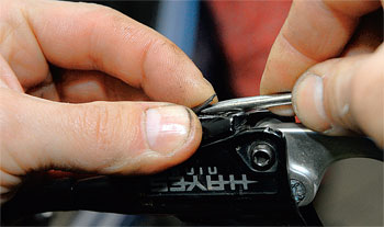 Krok podle prstů Krok páky je možné přizpůsobit délce prstů pomocí nastavovacího imbusového šroubu, ten se však typicky pro Hayes často samovolně povoluje a neúměrně tak prodlužuje krok páky i během vyjížďky. K jeho zajištění je ideální použít montážní lepidlo (například Loctite) nebo kapku barvy.