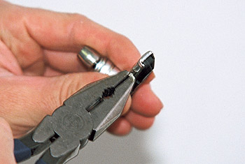 U nových špalků bývají v sadě také nová perka, ovšem poslouží i ta původní. Zajištění špalku je posledním krokem výměny. Pomohou jak kleště, tak i zamáčknutí perka o tvrdý povrch.