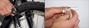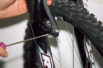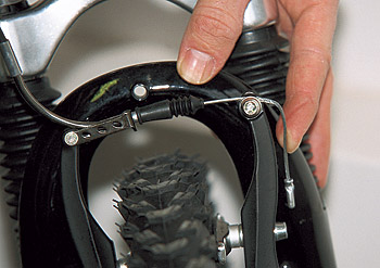 Vlastnímu seřízení čelistí by měl předcházet důležitý krok, k němuž vás nové špalky stejně donutí – zašroubování stavěcího šroubu lanka na brzdové páce, kterým jsme s rostoucím ojetím špalku regulovali krok páky. Pokud bude nutné také povolit a posunout lanko v čelistech, vyplatí se jej dobře prohlédnout. Pokud je příliš roztřepené, nebo jsou zpřelámané některé drátky, bude lepší jej vyměnit.