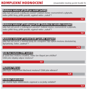 Verdikt: Značka si nechává vyladit pohonnou jednotku podle svých představ, stejně tak pružící elementy. Výsledkem jsou vyvážené jízdní vlastnosti a vždy něco navíc, jako například možnost zcela individuálního přizpůsobení kola podle potřeb jezdce. Levo ale jednoznačně přesvědčilo testery i v základním nastavení. Posunuje limity nejen třídy, ale také limity jezdce.