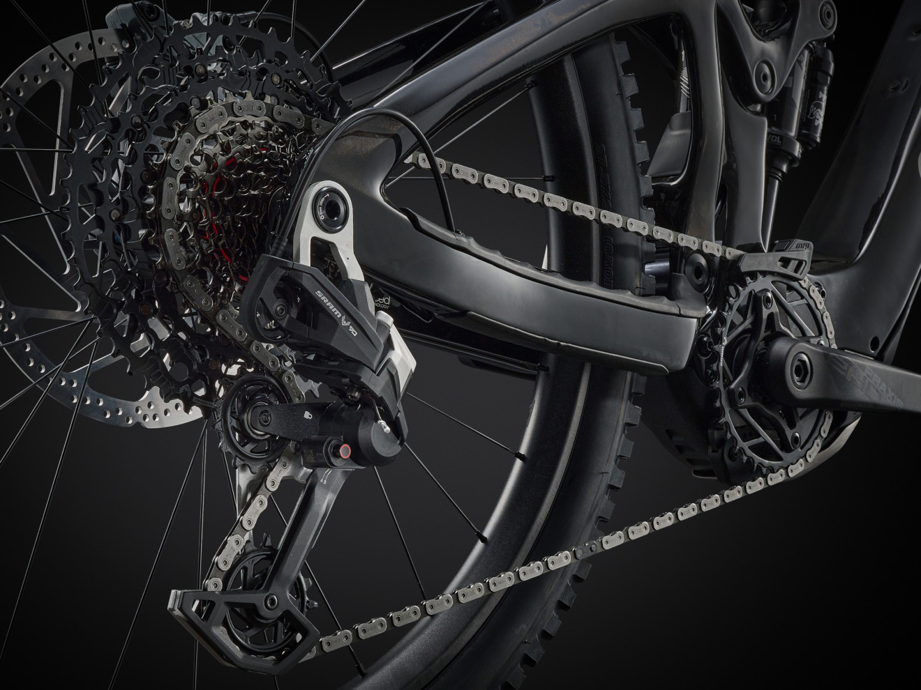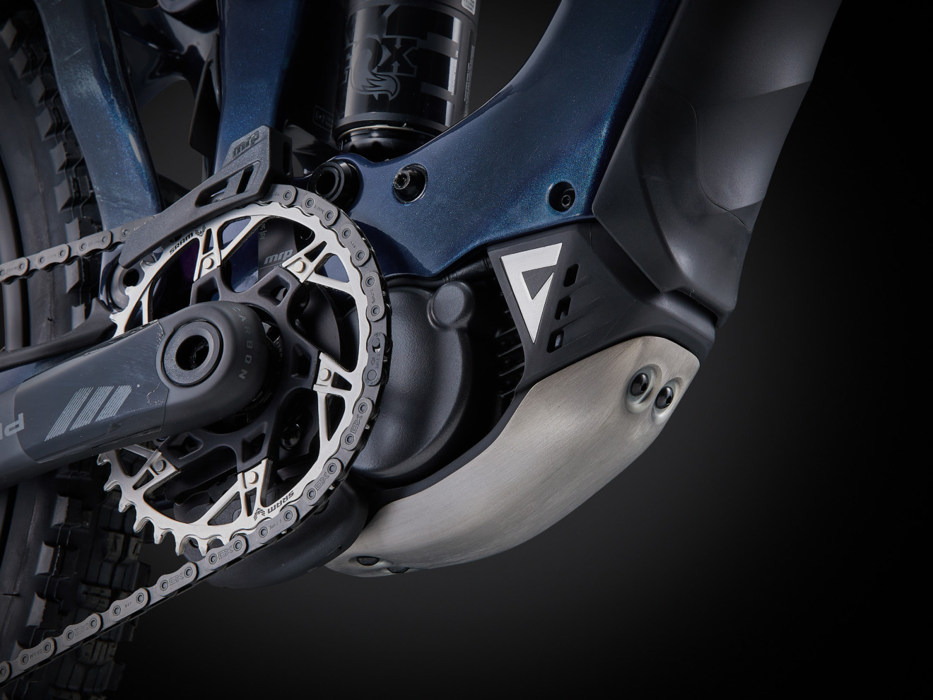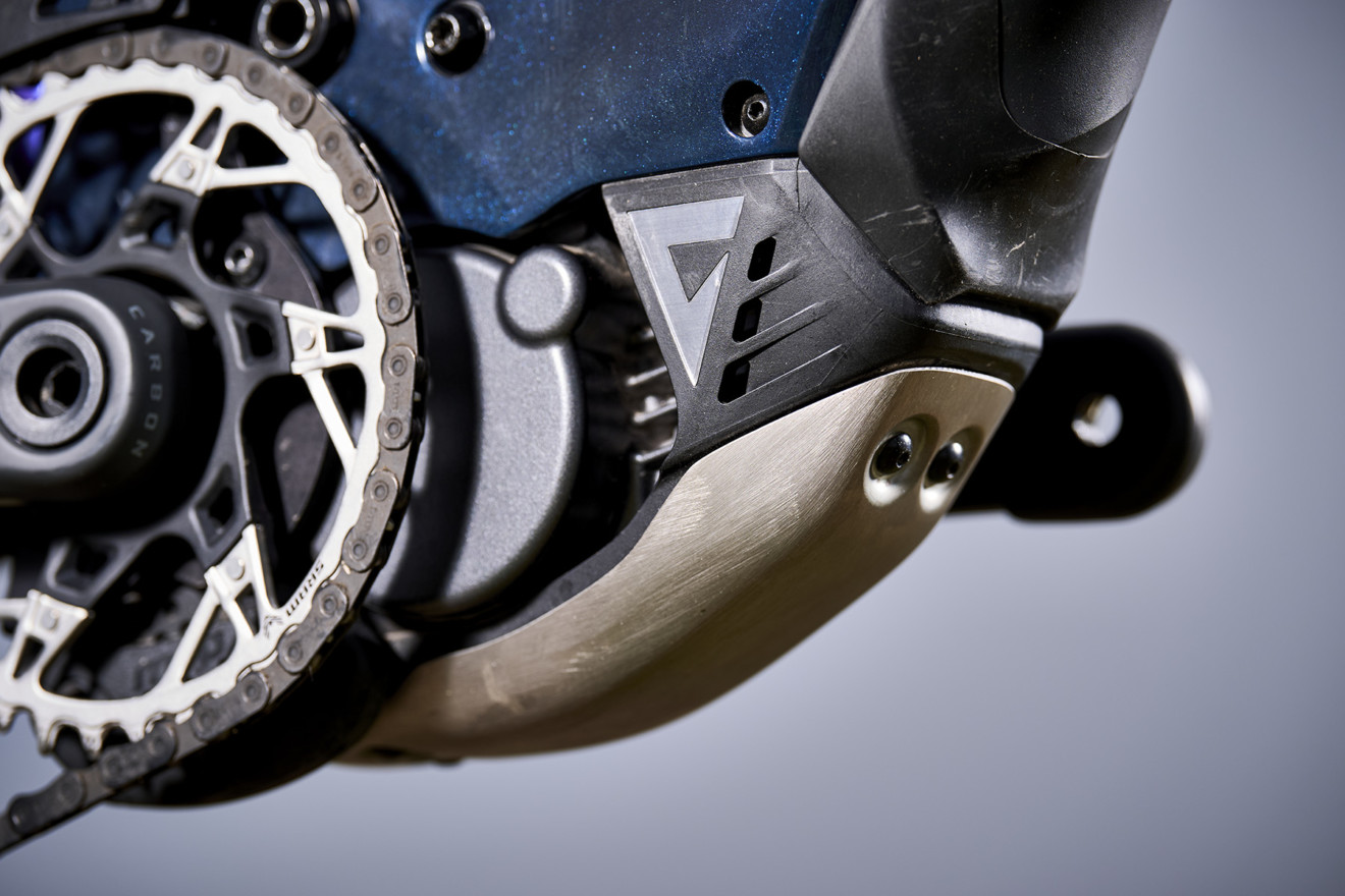 Jednou z nejzásadnějších změn na novém „éčku“ od Giantu je pohonné ústrojí SyncDrive Pro 3, spoléhající místo 36V systému u minulé generace na 48V architekturu. Vyšší voltáž umožňuje fungovat celému pohonu s výrazně nižším proudem při zachování výkonu, což přináší jednu zásadní výhodu – nižší zahřívání a vyšší efektivitu. Reign Advanced E+ je tak připraven na pořádnou nálož. Poukazuje na to třeba funkce Launch Control umožňující ladit charakter akcelerace v sedmi úrovních – od pozvolného až po agresivní „odpich“ s plným výkonem dostupným během několika milisekund. A to na systém vynakládá obrovské nároky. Ale k číslům… SyncDrive Pro 3 nabízí až 90 Nm točivého momentu a 800 W špičkového výkonu. Vysokou úroveň točivého momentu pak udržuje i při vysoké kadenci. Za zmínku rozhodně stojí, že motor kryje extrémně odolný titanový skid plate, žádný tvrzený plast.