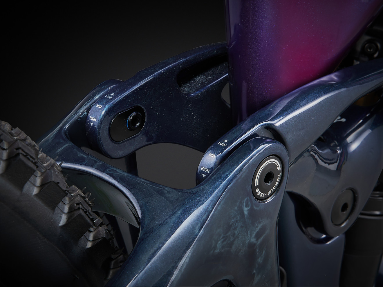 Rám dostal možnost měnit geometrii. Trojpolohový flip chip v horním vahadle umožňuje jemné nastavení dle preferencí jezdce. To ale není všechno. Kdo má zájem vyladit si přesně reach podle svých potřeb, dostává se mu takové možnosti, jelikož Reign Advanced E+ v Giantu vybavili flip chipem hlavového složení.