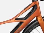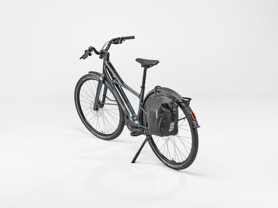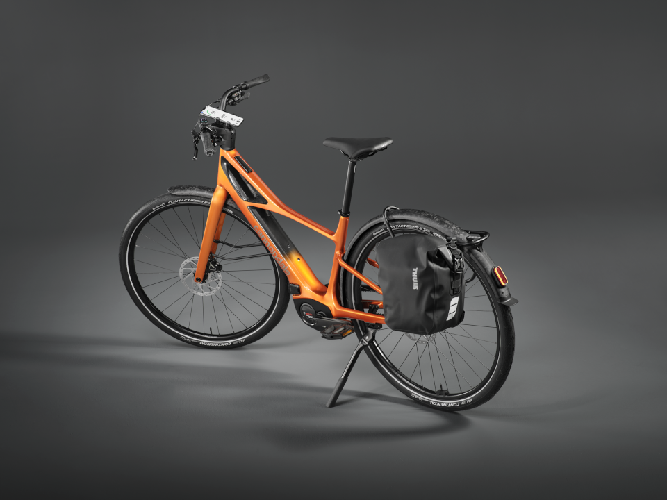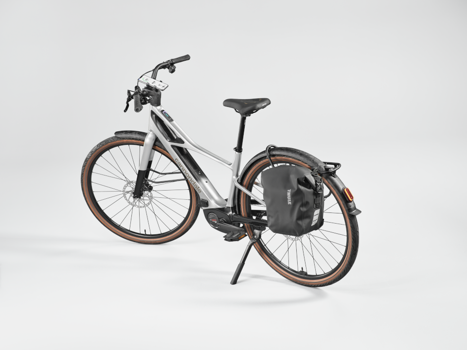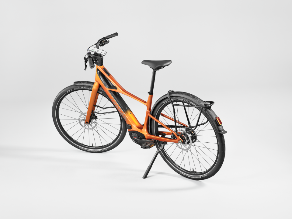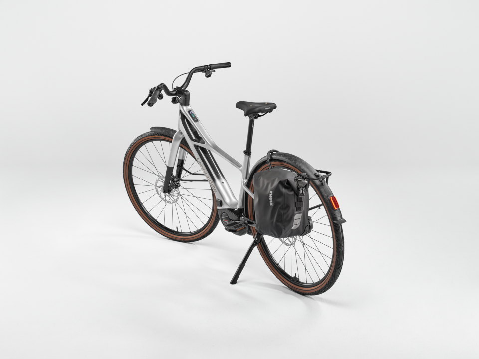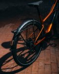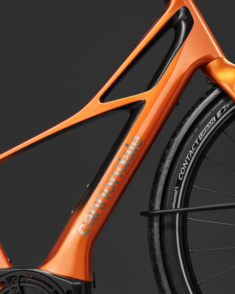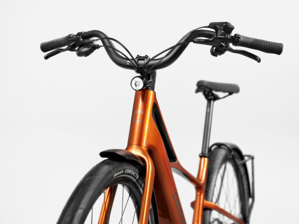 FlyingV jako přednost vytahuje také řadu praktických prvků, kdy každý je designovou laskominou. Začít můžeme třeba integrovaným nosičem brašen, který si zachovává lehkost, je nenápadný a pevný, protože počítá se zátěží až 18 kg. Unikátní jsou nenápadné karbonové blatníky integrované s rámem. Pak jsou tady dotykové body – řídítka, gripy a sedlo. Cannondale uvádí, že při výběru bylo vše podřízeno pro maximální komfort a kontrolu nad kolem. Té pomáhá i vzpřímená pozice spolu s promyšlenou geometrií, která kolu dává agilní a přesnou ovladatelnost. Všechny specifikace mají také výkonné integrované osvětlení Supernova.