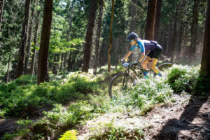 S večeří, možná, bolest ve stehnech při každém pohybu byla zapomenuta, ale druhý den začal se zaúpěním a zasyčením. Kurňajs, to budu muset rozhýbat! Příjemným faktem bylo, že jsme se probudili do slunečného dne a nebyly hlášeny žádné přeháňky, protože na těch kořenech a kamenech a sjezdech, které měly nastat, bych bojovala asi ještě teď. „Porolovali“ jsme se, aktivovali tím svaly, nasnídali a po kontrole kol jsme vyrazili na start. Start byl na dnešní etapu naplánován stejně jako včera, v místě finiše u dolní stanice lanovky.