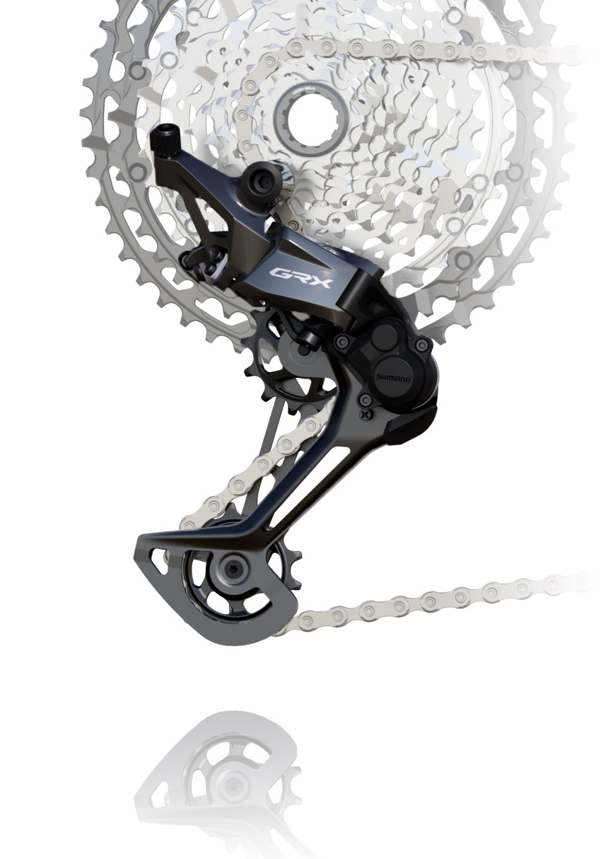 Novinkou pro tuto generaci GRX je možnost výměny klece přehazovačky pro systémy 1×12. Kvůli upgradu tak nemusíte kupovat úplně novou přehazovačku. Shimano navíc přináší svou osvědčenou technologii nábojů MICRO SPLINE na gravel, které počítají se všemi možnými specifikacemi 1×12. Lehká hliníková konstrukce ořechu si dobře rozumí s 10zubými krajními pastorky.