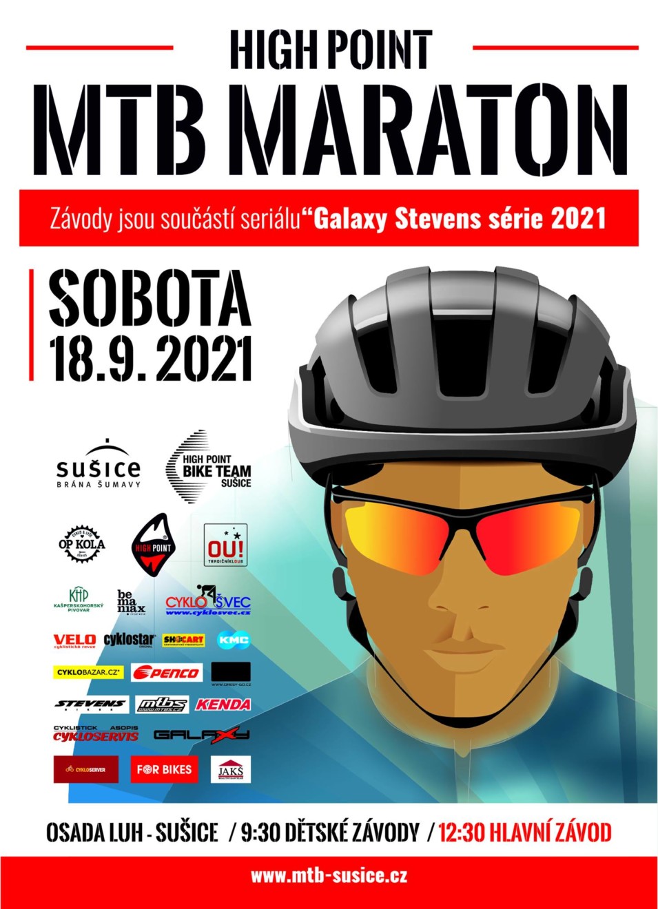 Přijeďte si zazávodit i s dětmi na 2. závod Galaxy Stevens série 2021 – SUŠICKÝ HIGH POINT MARATON třetí zářijovou sobotu do Sušice, pomyslné brány Šumavy. Koná se zde již tradiční MTB maraton, který prověří, kolik jste toho letos natrénovali. Na výběr jsou 2 trasy, krátká 32 km a dlouhá 50 km se startem u letního koupaliště ve 12:30. hod.