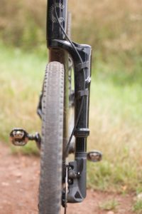 V osazení nečekejte standard. Začnu tím, co je prostě to nejvíc zvláštní. Vidlice Lefty Oliver se zdvihem 40 mm je specialitou této značky. Lockout vidlici dokáže zcela zamknout, natvrdo. Při otevřeném lockoutu se Lefty nepohupuje stejně jako například vidlice na XC kole, ale větší nerovnost typu díry v silnici dokáže solidně utlumit.