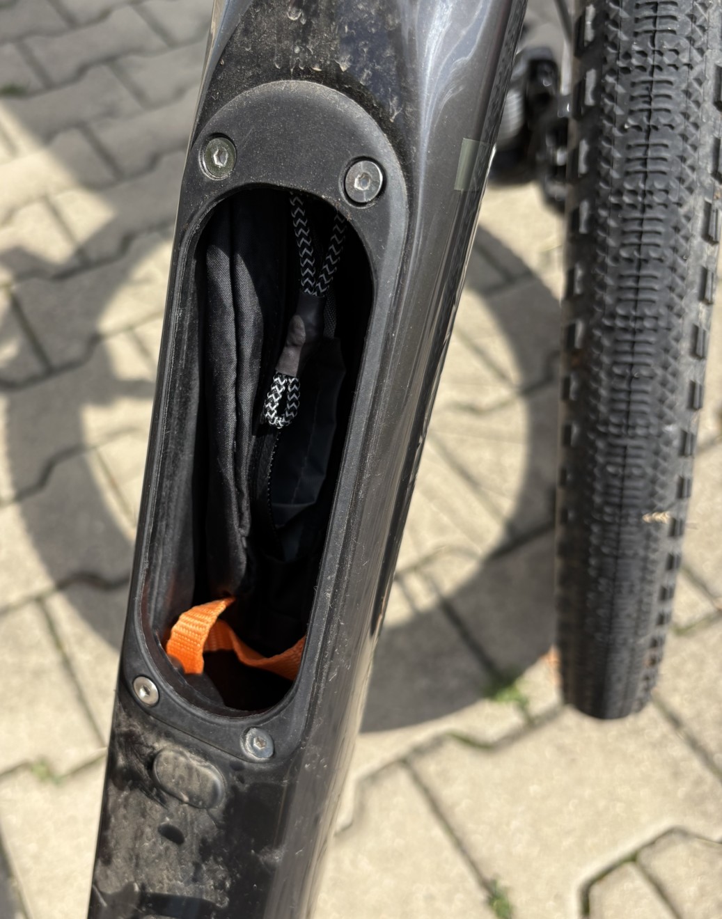Zadní pevná osa je dnes již naprostý standard, nechybí zde ani UDH patka, která mimo své hlavní poslání umožňuje osazení „bikovějších“ převodů. Středová osa je zde závitová (BSA), uchycení brzdy zůstává typické pro silniční či gravel rám, tedy Flat mount. Nechybí příprava na teleskopickou sedlovku v průměru 27,2 mm. Tu bych na kolo hned osadil, hodila by se k němu. V neposlední řadě disponuje rám i malým úložným prostorem ve spodní trubce, jak je dnes čím dál obvyklejší.