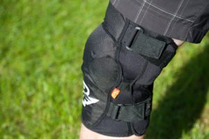Existuje celá řada dělení, přičemž Race Face Ambush definuje standardní či spíše kratší délka, kompletní rozepínatelnost na boku pomocí tří pásků se suchým zipem a ochrana D3O (speciální hmota, která je měkká, ale po nárazu tuhne) označená T5 Evo X. Pod kolenem je chránič tenký, z prodyšné tkaniny, už na stranách kolen jsou ale měkčí pěnové dílce našité na neoprenovém podkladu. Tady už začíná ochrana.