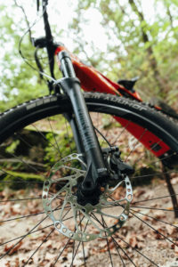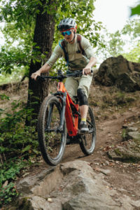 Stejně tak už jsme psali mnohokrát o motoru Bosch Performance Line CX. Na testovaném biku byl jeho projev už před přizpůsobením jezdci spíš jemnější a plynulý než brutálně silový. I v režimu Turbo byl rozjezd předvídatelný a snadno kontrolovatelný, což se hodí jak na technických pasážích, tak i v městském provozu. Výkonu je dost, ale kolo se necpe dopředu, když to sami nechcete – naopak umí jemně stupňovat tlak podle síly šlápnutí, takže to působí přirozeně. V eMTB režimu reaguje svižně, ale opět ne nepředvídatelně, a pokud máte nohu lehčí, motor vás podrží bez přepálení tempa.