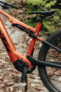 KTM u tohoto modelu vsadilo na robustnost, jednoduchost a praktičnost. Sáhlo pro osvědčený robustní rám z hliníkové slitiny 6061 s 29“ koly a zdvihem zadní stavby 125 mm, dopředu putovala vidlice se 130 mm. Všechny milimetry tu kontrolují jednotky RockShox. No a sázkou na osvědčenou jistotu byla volba motoru Bosch Performance Line CX Smart System, který v kombinaci se 750Wh baterií slibuje jak sílu, tak výdrž na celý den.