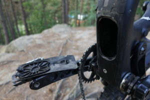 Samotný aktuátor je kolečko, na kterém je hrubé lanko, které svým pohybem upravuje výšku zdvihu na spodním konci sedlovky. Jakmile začne při otáčení do plusu nebo minusu lanko prokluzovat, je nastaven mezní bod. Ano, trochu krkolomný, ale vcelku jednoduchý způsob. Jediným drobným minusem tohoto řešení je jeho velikost a umístění na levé straně sedlovky, kde o něj lze škrtnout nohou při šlapání. Ovšem je to chytrý koncept, jehož smyslem je dovolit co největší zasunutí sedlovky do rámu kola.
