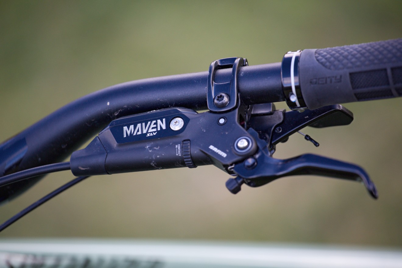 Z dílny Sramu na „zeleňáka“ přistály i brzdy, či v tomto případě lépe řečeno kotvy Maven, konkrétně ve verzi Silver. Jejich brzdný účinek mi znovu připomenul předchozí testy kol, na nichž byly osazeny. Jako ohromující jsem ho poznal tehdy, ale i teď. Člověk při brzdění prostě vyhazuje kotvy. Jediné, co mi trošku kazilo zážitek, byly kotouče Sram Centerline o průměru 200 mm vpředu a vzadu. Kotouče to sice jsou velké, to ano, ale jejich slabší tloušťka 1,8 mm prostě Mavenům nesvědčí. Kroucení kotoučů a snazší přehřátí není něco, co chcete řešit, pokud máte brzdy jako Maven. A já to bohužel řešit musel. Malá chybka v systému, v osazení kola.