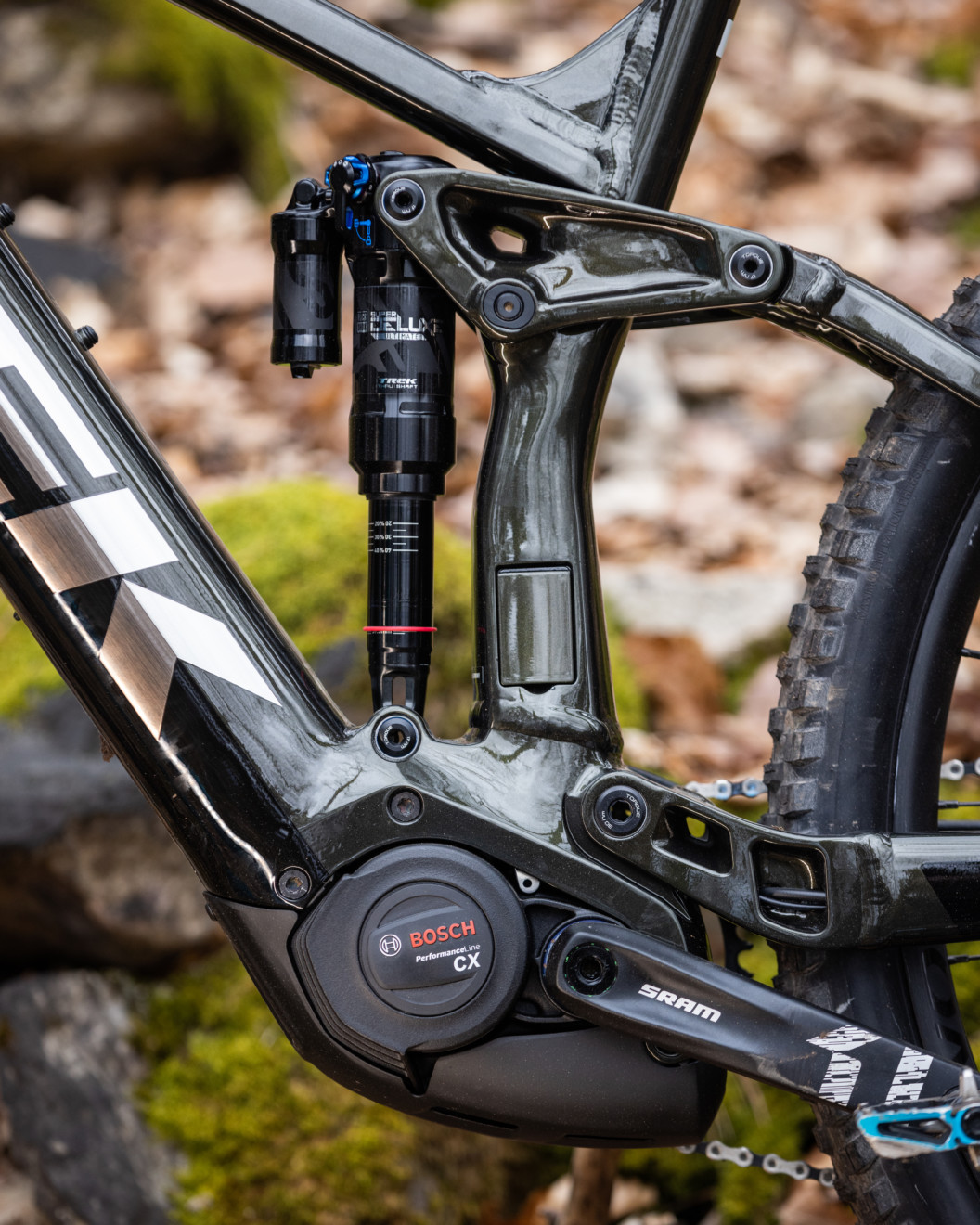 Základem je hliníkový rám, jemuž vévodí mohutná spodní trubka ukrývající v sobě baterii a pohon v podobě motoru Bosch Performance CX. Ostatní komponenty jen podtrhují mohutnost celého kola. Ať už je to vidlice RockShox ZEB Select+ a její 38 mm široké vnitřní nohy nebo pláště o rozměrech 29×2,5″. Je to zkrátka plnokrevný celooodpružený e-bike, který se ke své kategorii hrdě hlásí.