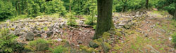 Uhýbáme vpravo na červenou turistickou značku, drápeme se na Malý vrch (627 m n. m.) a poté příkrým, ale přesto zdolatelným krátkým stoupákem k hřebenovce. Zde se nakrátko ocitáme v panství Brdské vrchoviny a její přírodní rezervaci Kuchyňka (635 m n. m.). I přes název zde nenajdeme žádný obrovitý dřez či možnost dotočení vody z kohoutku do camelbaků. Název tak spíše koresponduje s divotvornou kuchařkou přírodou, jež zde vytvořila výrazný vrchol úzký jen pár metrů. Vine se po své délce suťovými porosty lesů, kameny ozdobené zelenými lišejníky na sobě leží jako rozbořená hradba dávných stavitelů, kteří jako by neuměli opracovat horninu do jasných tvarů. Pasáže cesty prověřují naši předvídavost v suťových polích a pružení nám usnadňuje cestu dál. Výhled na Rosovice a jejich Vackův a Sychrovský rybník je nám umožněn jen díky kolmému průseku lesním porostem a zůstává tak jediným možným místem pro pozorování z výšin. Odkláníme se z hřebene vpravo na žlutou značku, kde nás okolní kmeny hustého lesa zdraví v pevném postoji a vytváří dlouhou linii ukazující cestu až k silnici vedoucí do Dobříše.