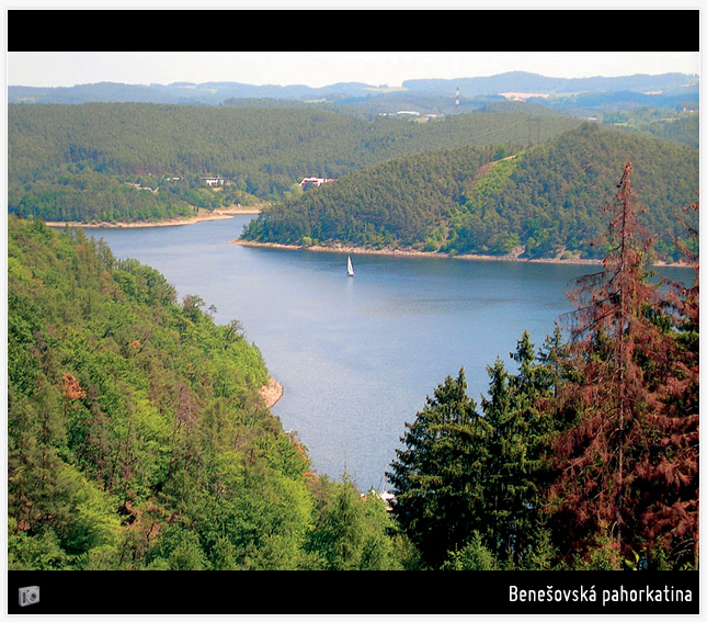 Od vodní plochy nás netrpělivě očekává stoupání a my se mu vydáváme vstříc. Funíme vzhůru skoro neprostupným porostem vlnitou cestou až k výhledu na níže položený Orlík s hladinou nesoucí v dálce miniaturní jachtu. U rozcestí Pod Čistou je nám nabízena žlutá turistická značka odbočením vpravo, jež by nás dovedla k samotné betonové hrázi přehrady. Tuto alternativu ale přenecháváme těm, kteří by naši trasu chtěli v budoucnu projet a okruh si tak příjemně prodloužit. Silnice nás vede do Bohostic a Pečic, následující rovný úsek se za křížením silnice č. 4 prosmýkne kolem Těchařovických rybníků a Hořejany jsou pro nás již jen zkratkou k dříve navštíveným Tochovicím. Za Chrástem míjíme vrch Chlumec (536 m n. m.) a dojíždíme do Rožmitálu pod Třemšínem s větrem o závod nesoucí se jako na křídlech orla.