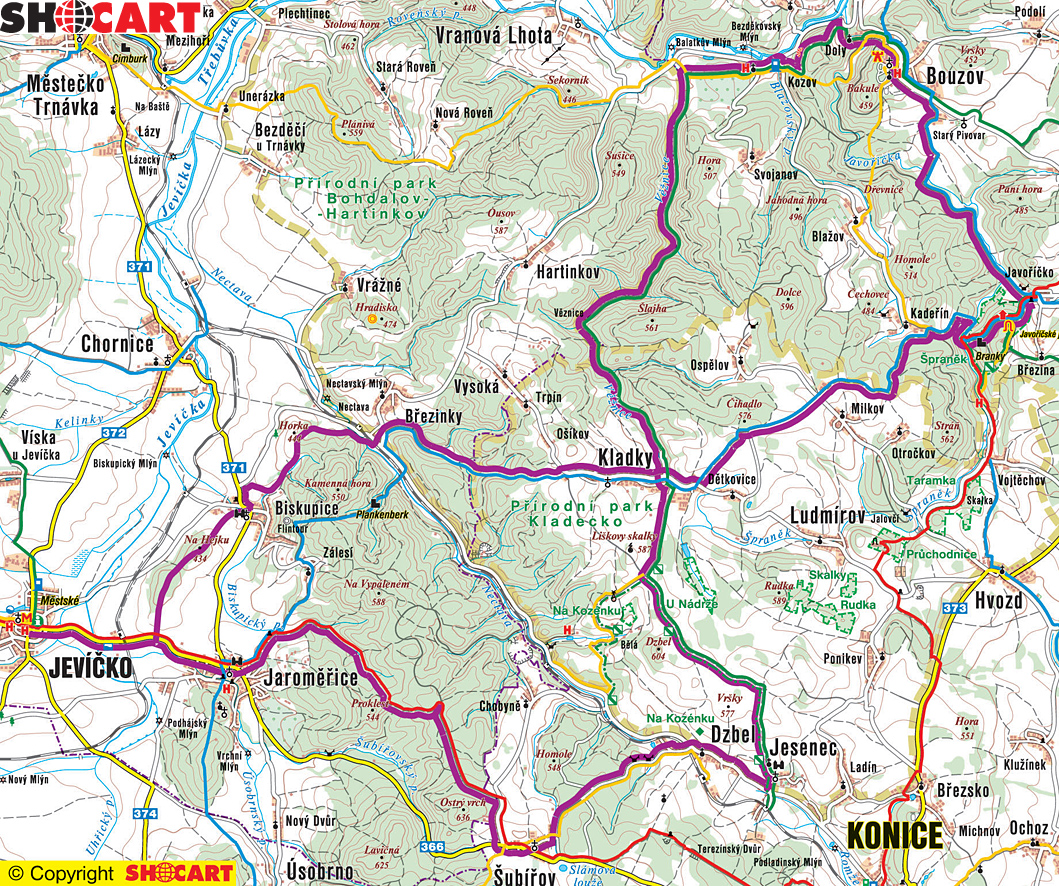 Mapa: ShocArt č. 55 – Svitavsko a č. 60 – Horní Pomoraví a Nízký Jeseník, 1:50 000, KČT č. 57 Haná – Olomoucko a č. 86 – Okolí Brna a Moravský Kras, 1: 50 000